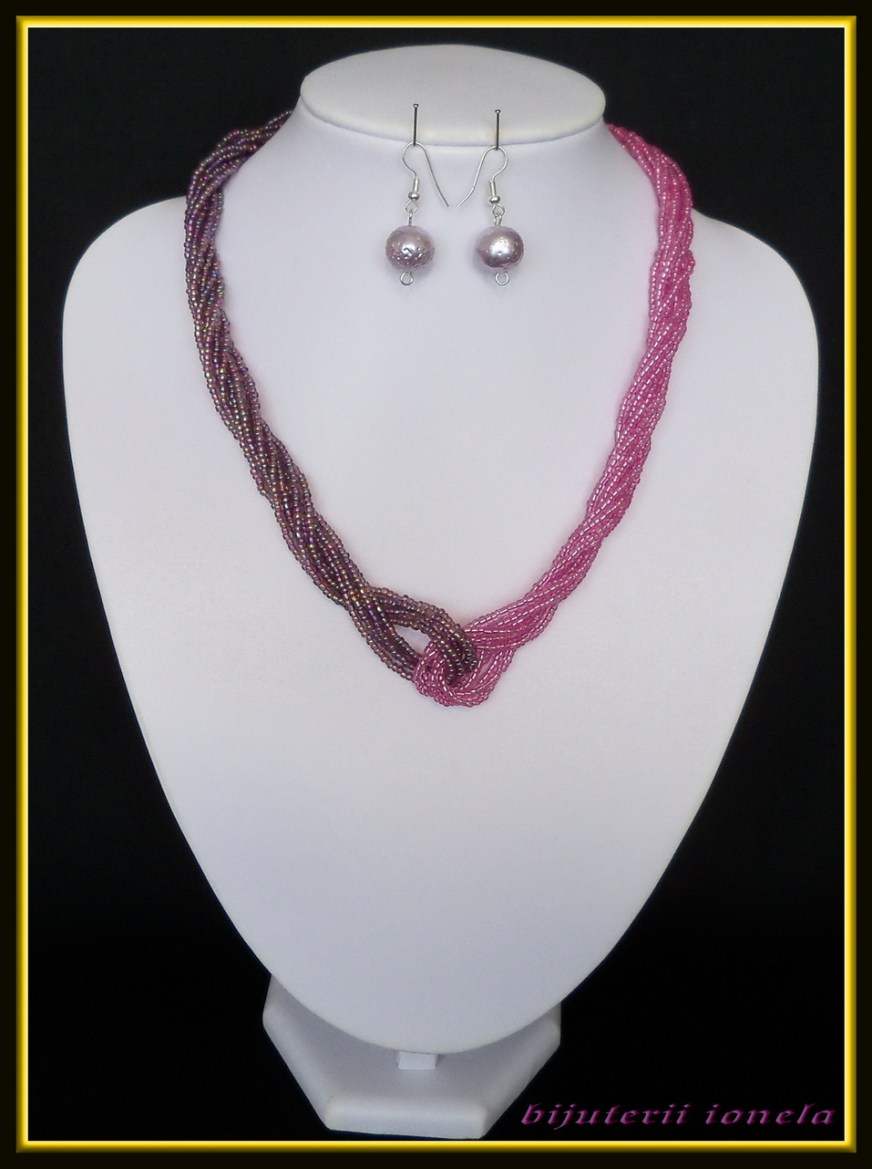 Colier si cercei.Colierul este facut din bead seed in doua nuante de ciclame.