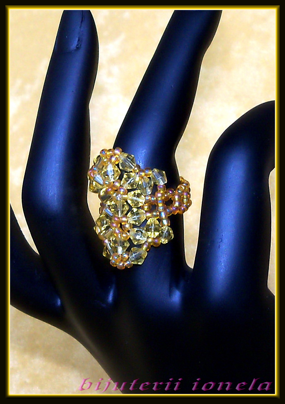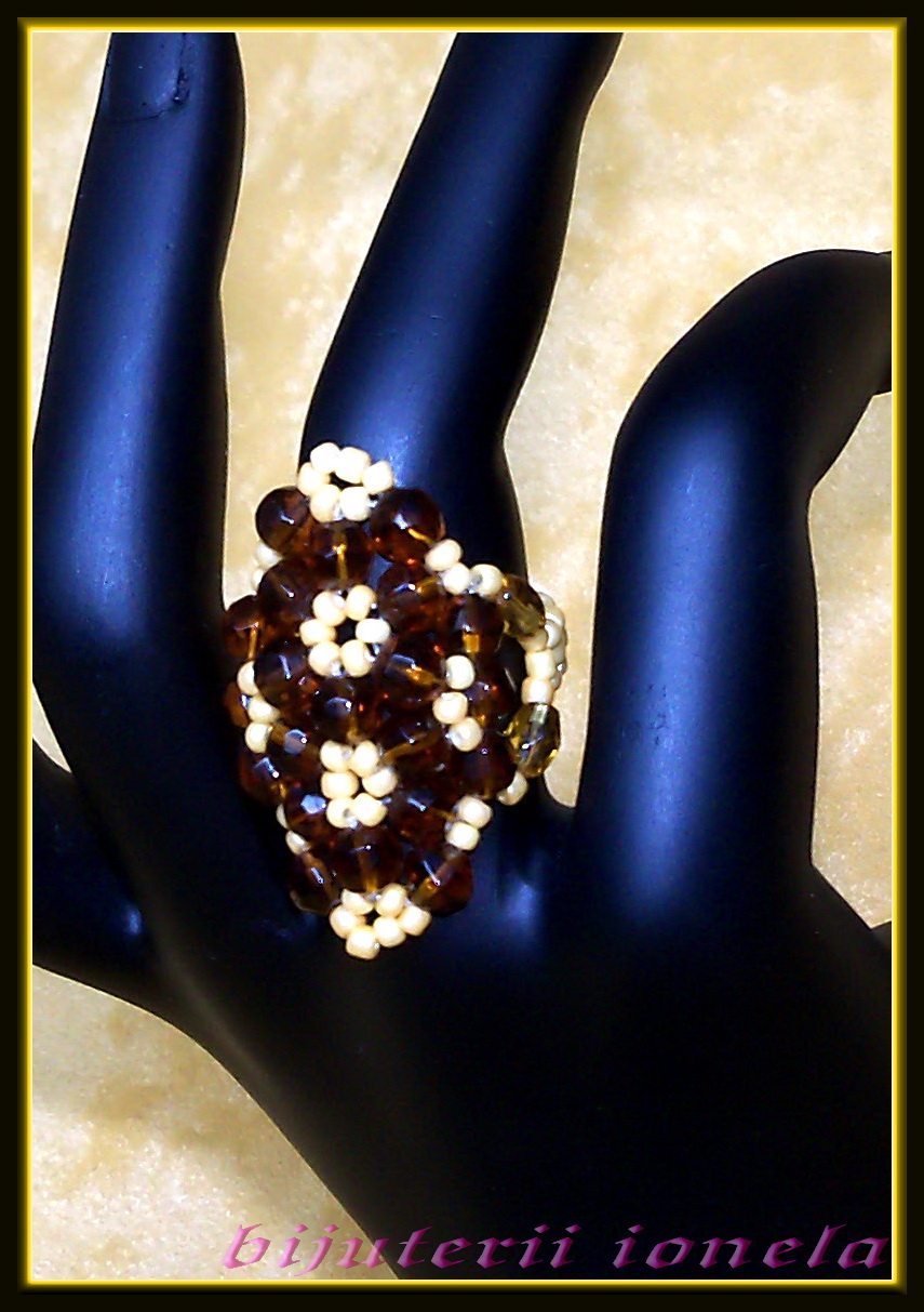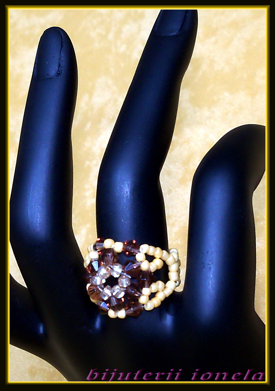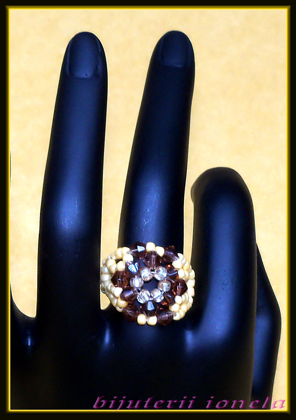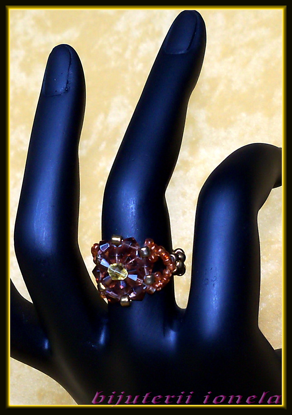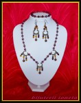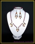 Set format din colier,bratara si cercei.Un set foarte dragut,facut din cristale biconice de diferite marimi ,in culori aurii,maron,aramiu.Colierul are o lungime de aprox.63 cm,iar pe centru are 3 accesorii din cupru patinat,bratara are in jur de 23 cm dar se poate scurta din model pentru ca are accesorii (ace) cuprate cu inel.Cerceii sunt lungi,cuprinzand aceleasi accesorii ca si colierul si au 7 cm.