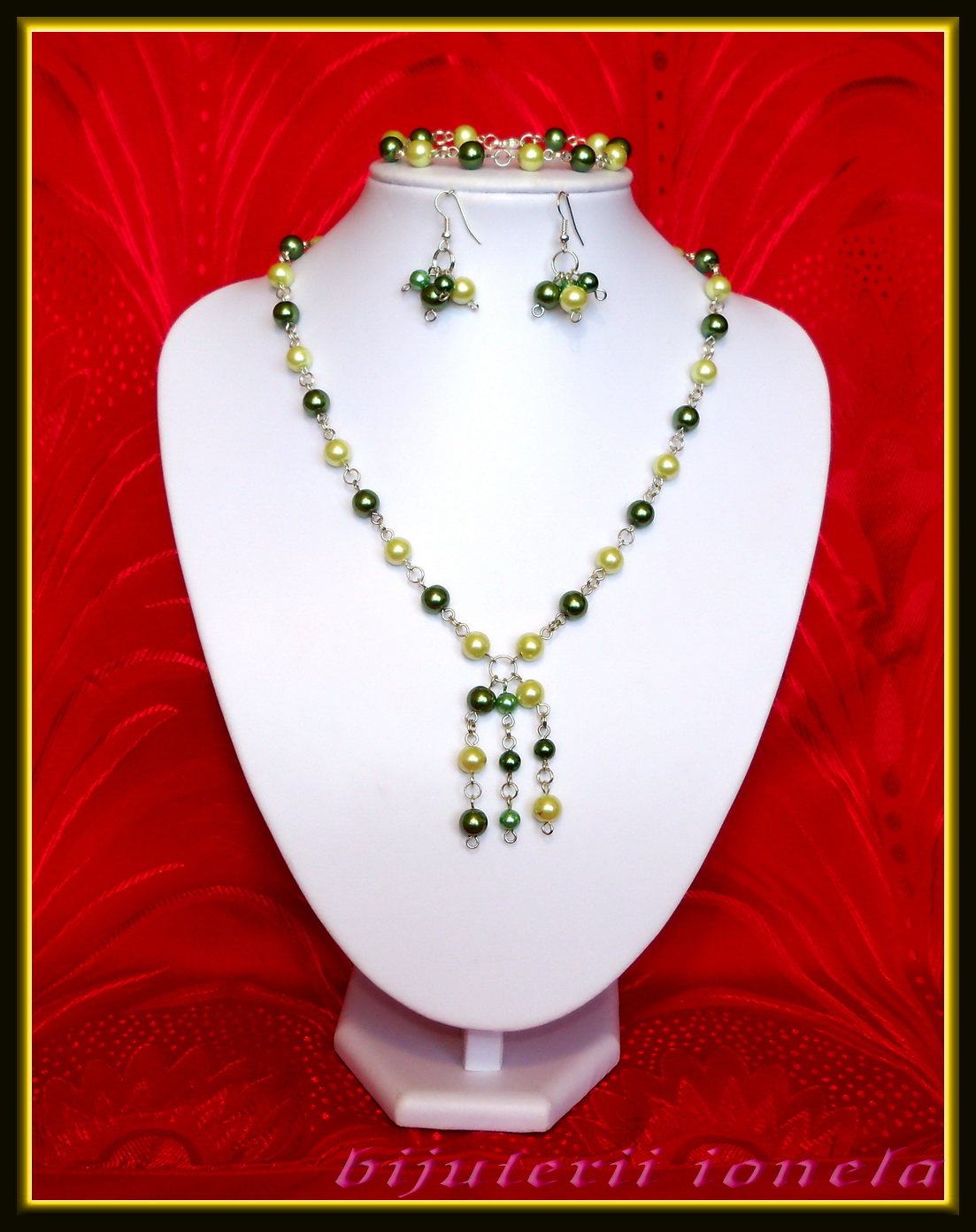 in BIJUTERII UNICAT - HANDMADE, SET BIJUTERII Etichete:Bratara, CERCEI, Colier, hande made, Margele, model, SET BIJUTERII, unicat