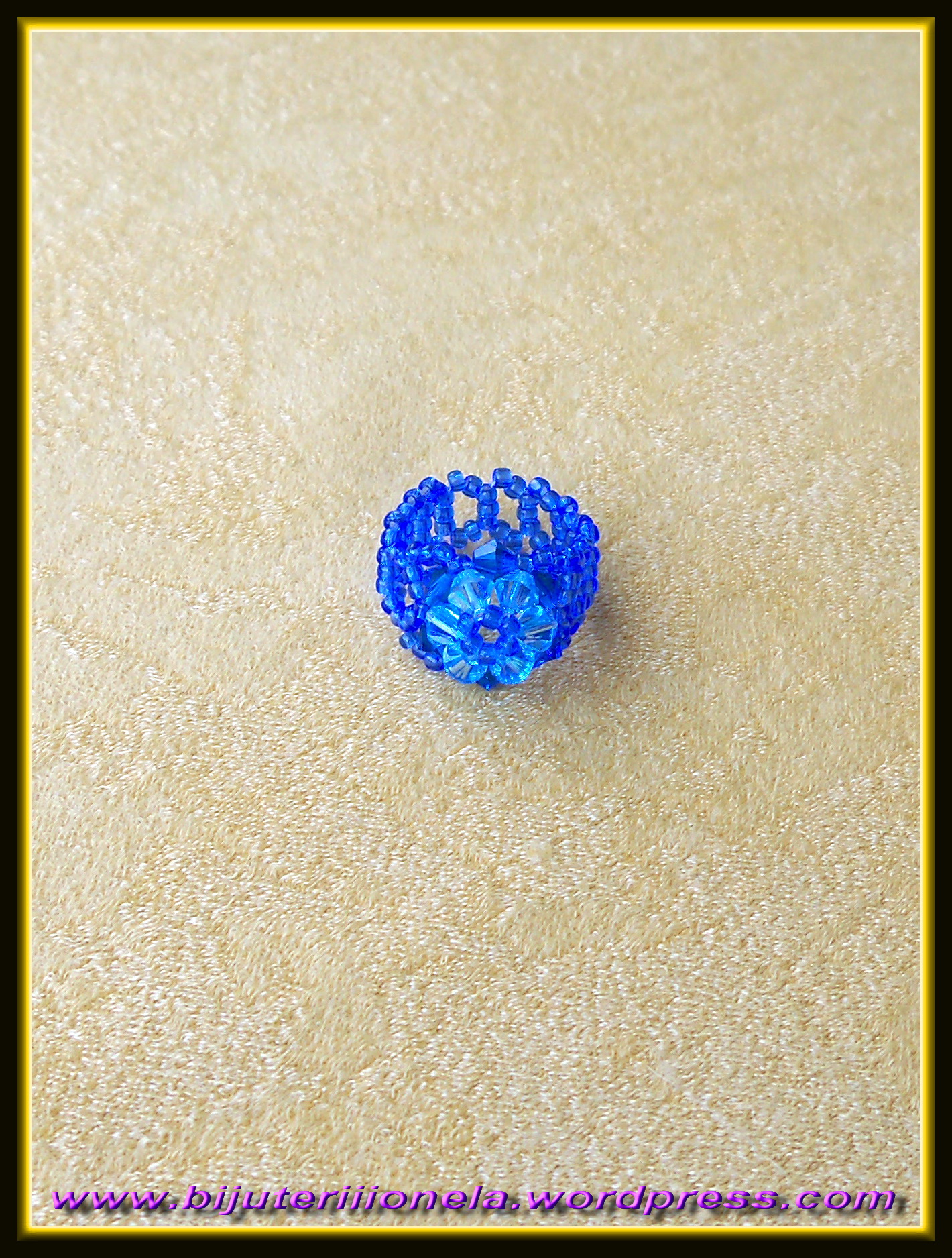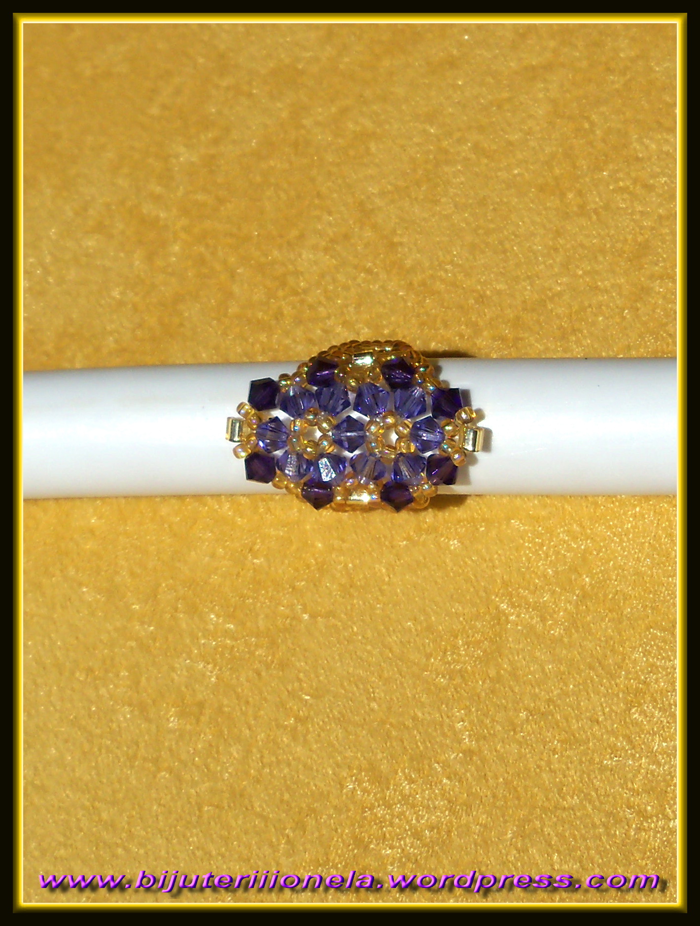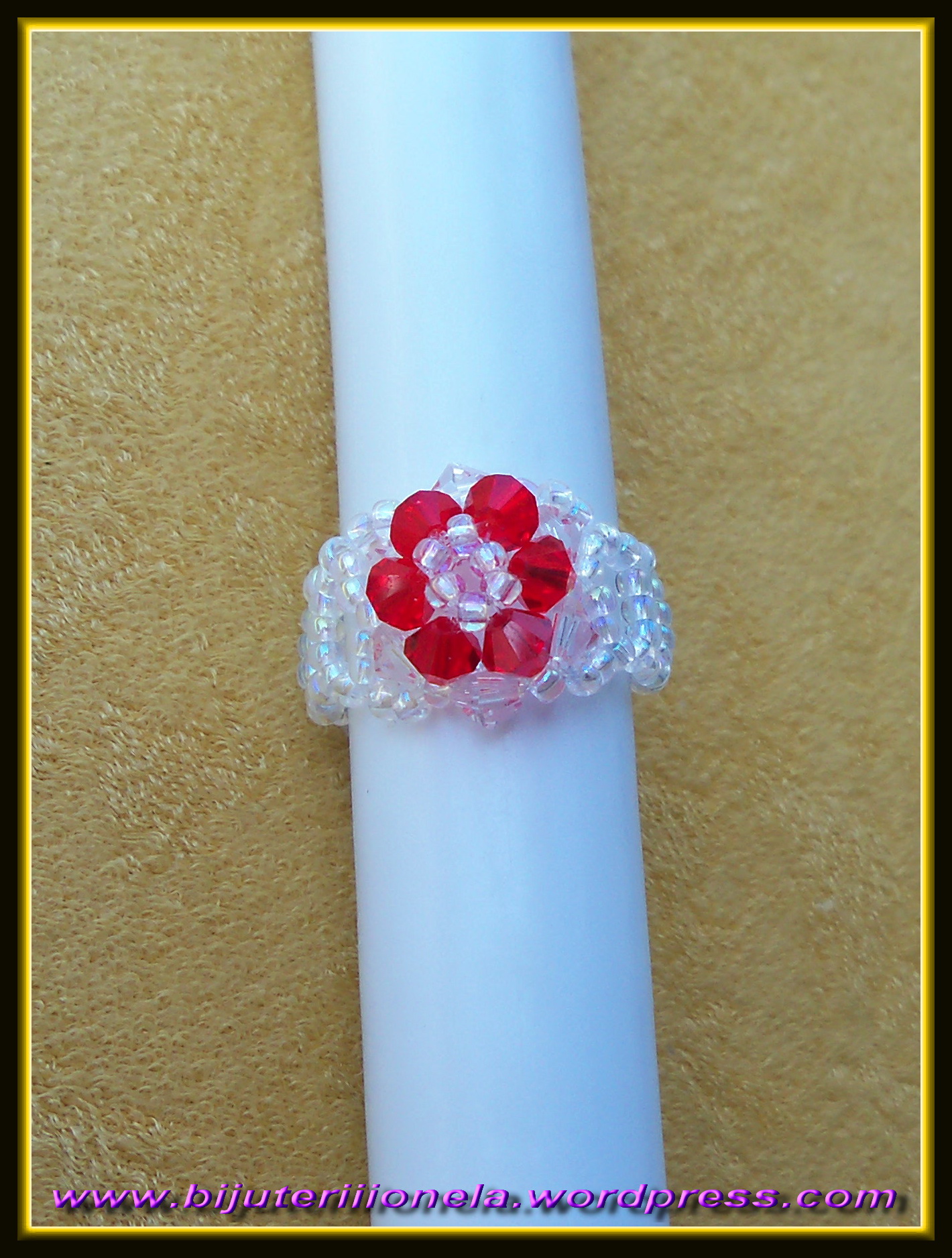 Inele confectionate din cristale Swarovski biconice de 4 mm ,in combinatii de culori diferite,margele toho 11/0 si fir de nylon.Un model deosebit ce cuprinde aproximativ 20 cristale si ,care se poate face in marimea dorita.