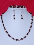 Este un set finut si discret care este facut din cipsuri de granat si perle naturale de cultura de culoarea somonului in forma de bob de orez.Colierul are o lungime de  48 cm, bratara are aprox. 20 cm , iar cerceii 4cm cu tot cu tortite.