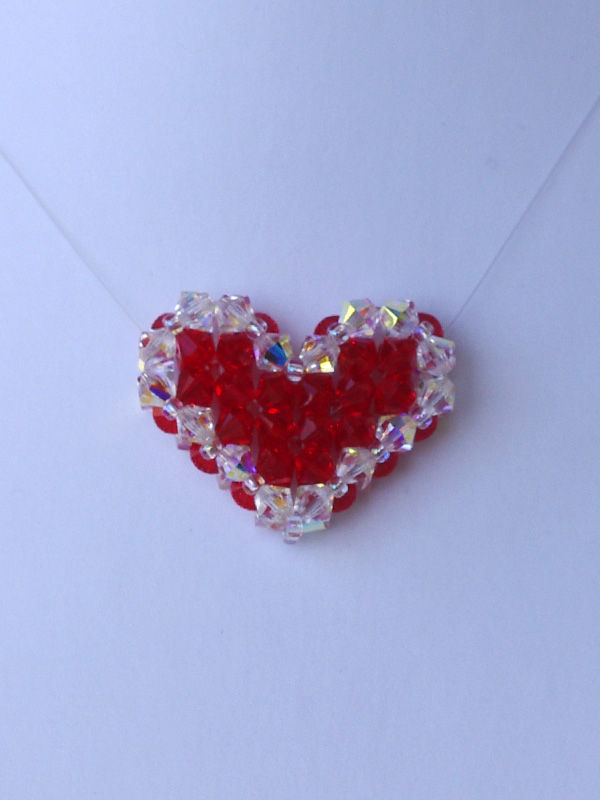 De ceva timp luna februarie a devenit luna indragostitilor si ca sa fiu in ton cu perioada va supun atentiei, pandative in forma de inimioara in 3D ,facut din cristale biconce Swarovski de 4mm ( aprox.75 buc) , de culoare cristalului fumuriu si auriu; sau rosie cu alb cu reflexe AB .Pandativele pot fi purtate pe catifea,pe snur ,matase si chiar pe lantisor de aur de marime medie.Inimioara are marimea de 3 / 2 cm. Deocamdata am o bucata pe culoare dar se poate multiplica.