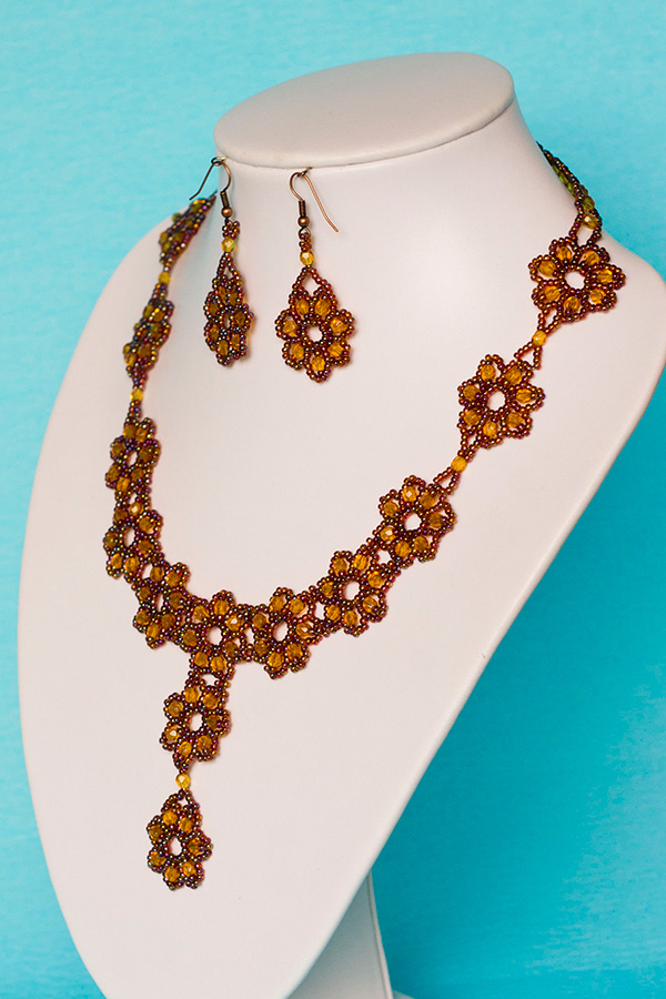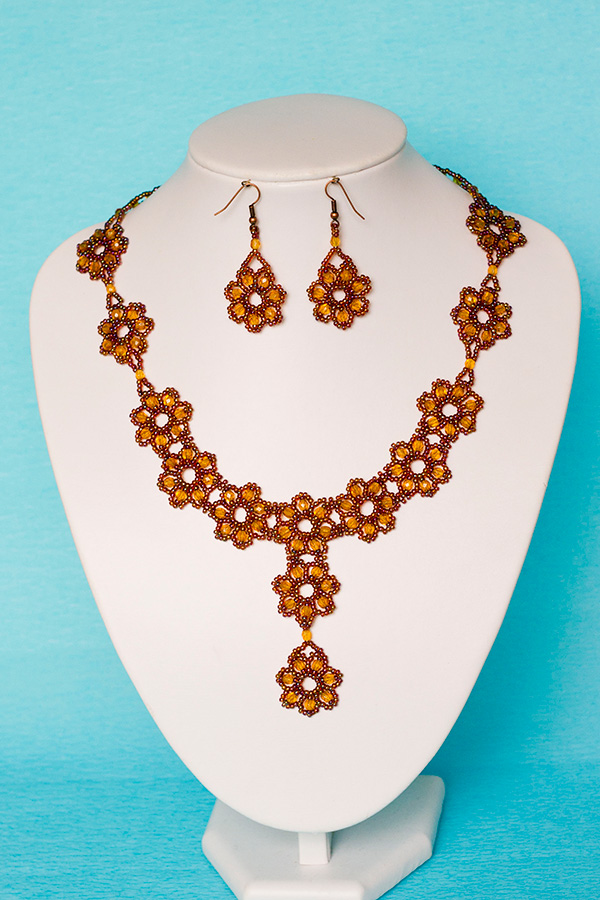 Etichete:BIJUTERII, CERCEI, Colier, fire polished beads PRECIOSA, hande made, margele toho, model, SET BIJUTERII, unicat