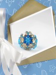 Un alt model de inel, de data aceasta intr-o combinatie de culoare …albatru /auriu/gri.Deci baza inelului este facuta din fire polished beads de 4mm de culoare gri- 24 buc, parte centrala e din cristale biconice Swarovski cu taietura xilion- “The best of brilliance!” culoare albastru intens – 6buc, care la randul lor sunt incadrate de fire polished beads aurii de 6mm – 7buc.Am mai folosit margele toho 11/0 bleu cu interior argintiu si bineinteles firul meu de nylon monofilanent teflonat ultrastrong.Inelul are o marime de 8 , dar la cerere se poate face altul cu o alta marime si alta combonatie de culoare.