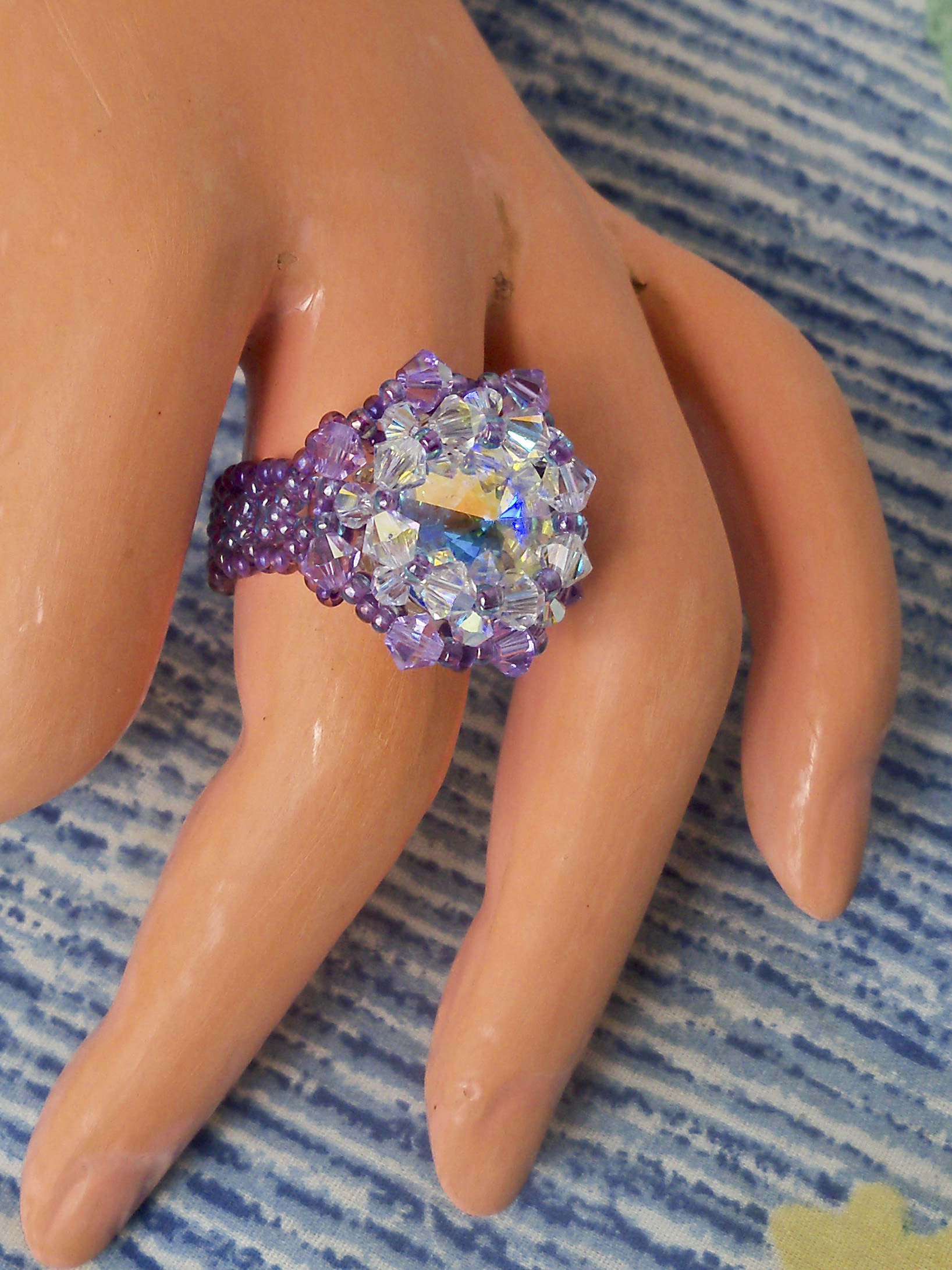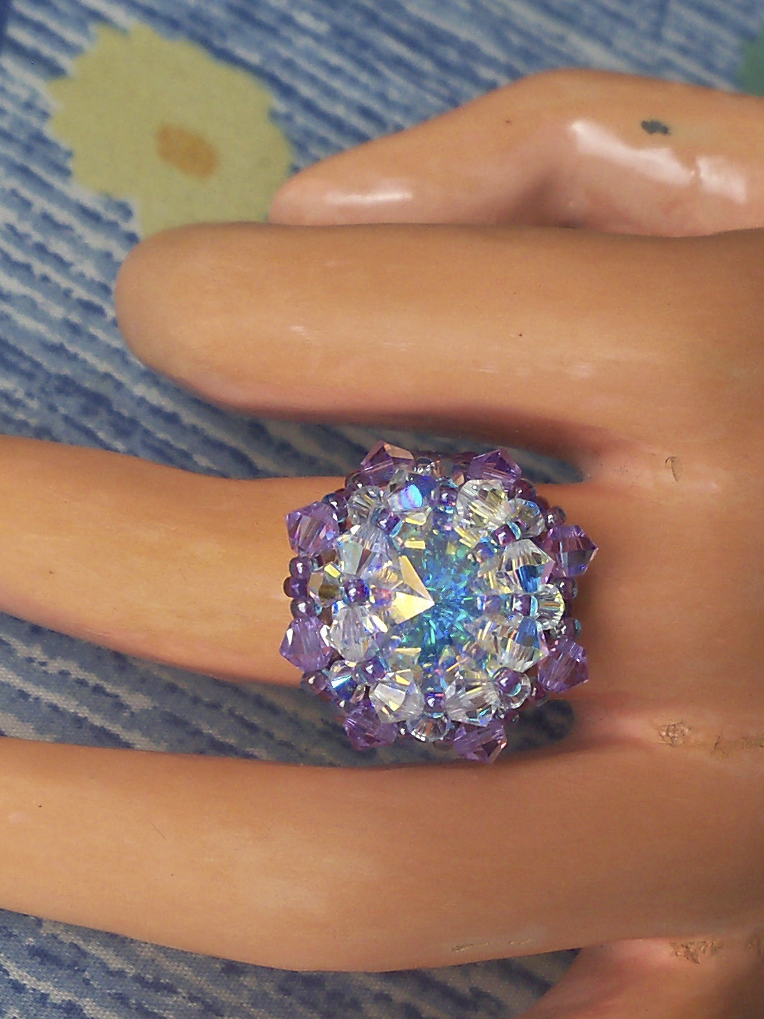 Inel din cristale swarovski, rivoli swarovski, margele toho si fire polished beads.