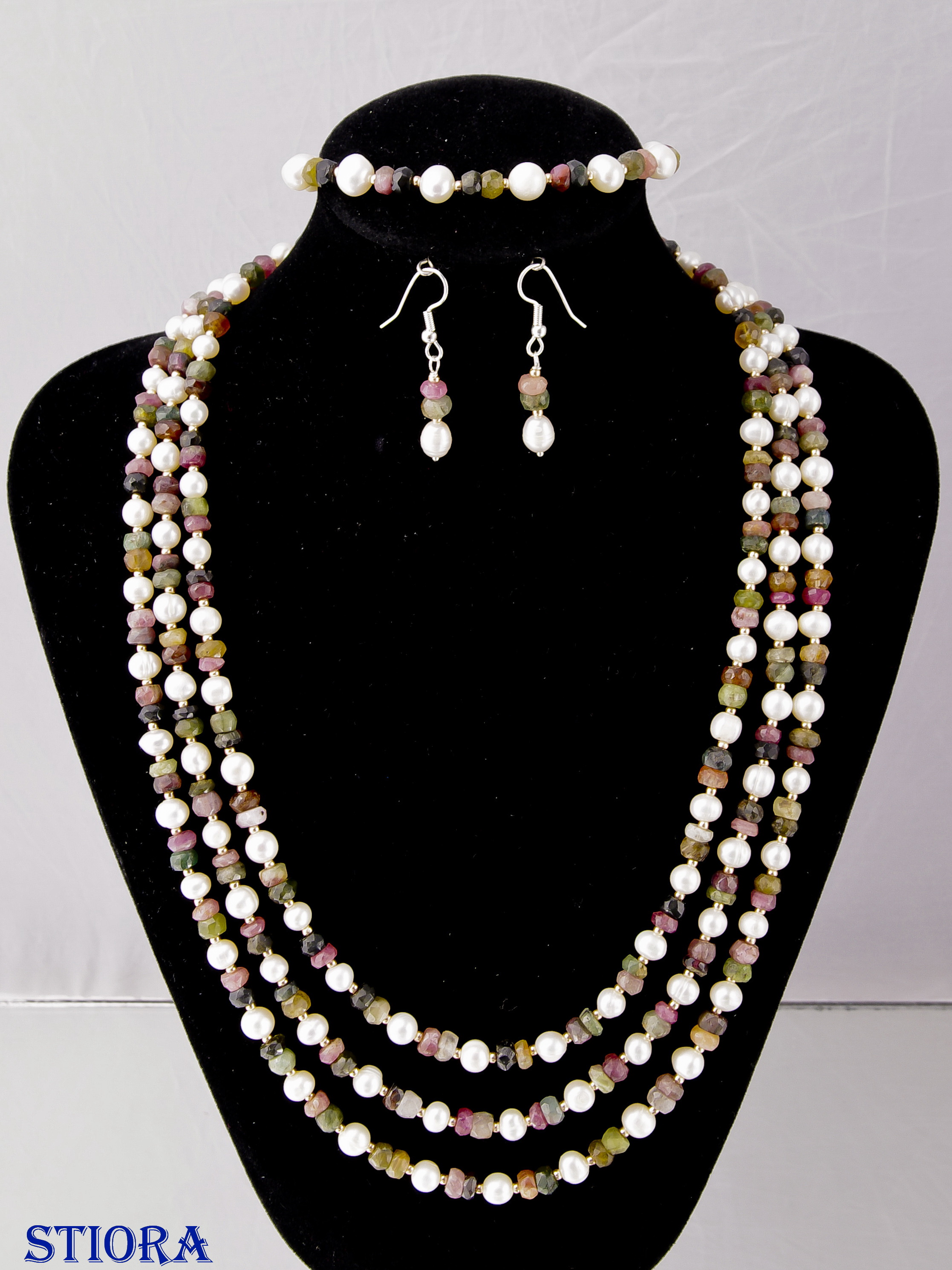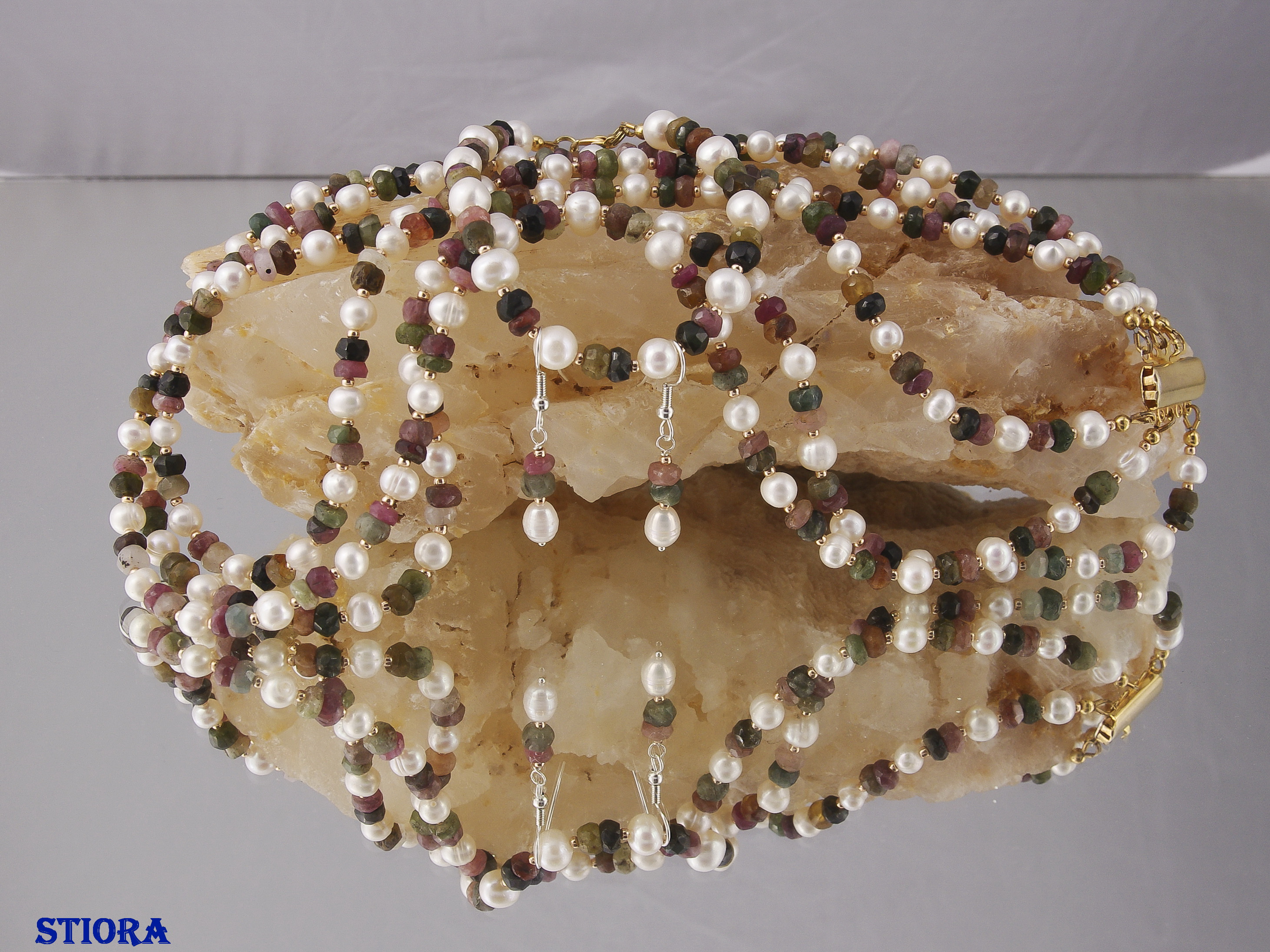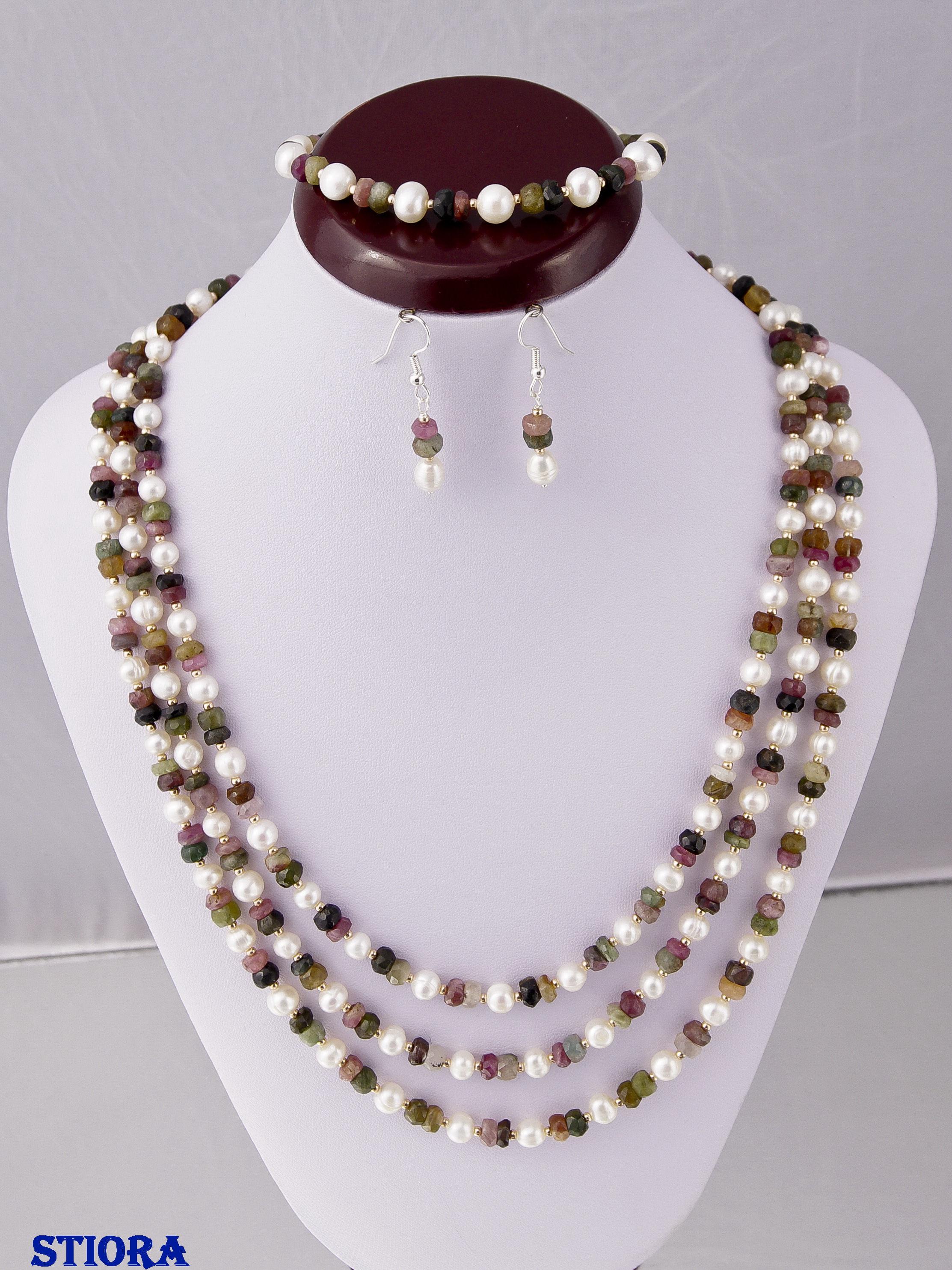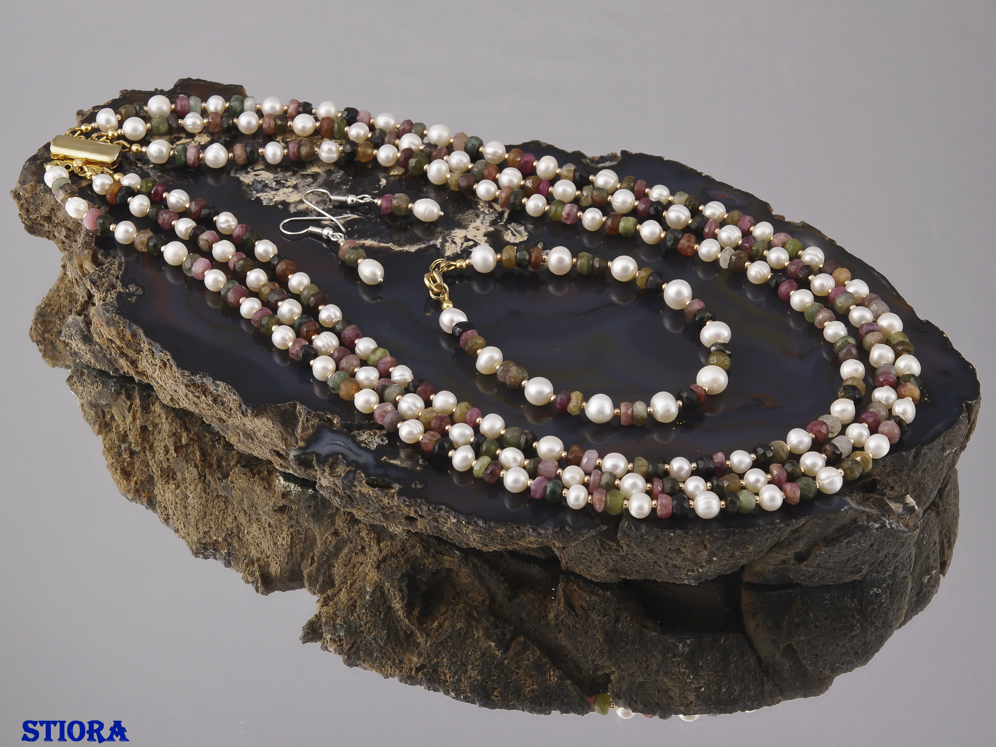Set din perle naturale de cultura, margele toho si turmalina fatetata. UNICAT.