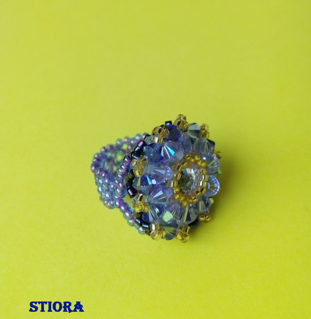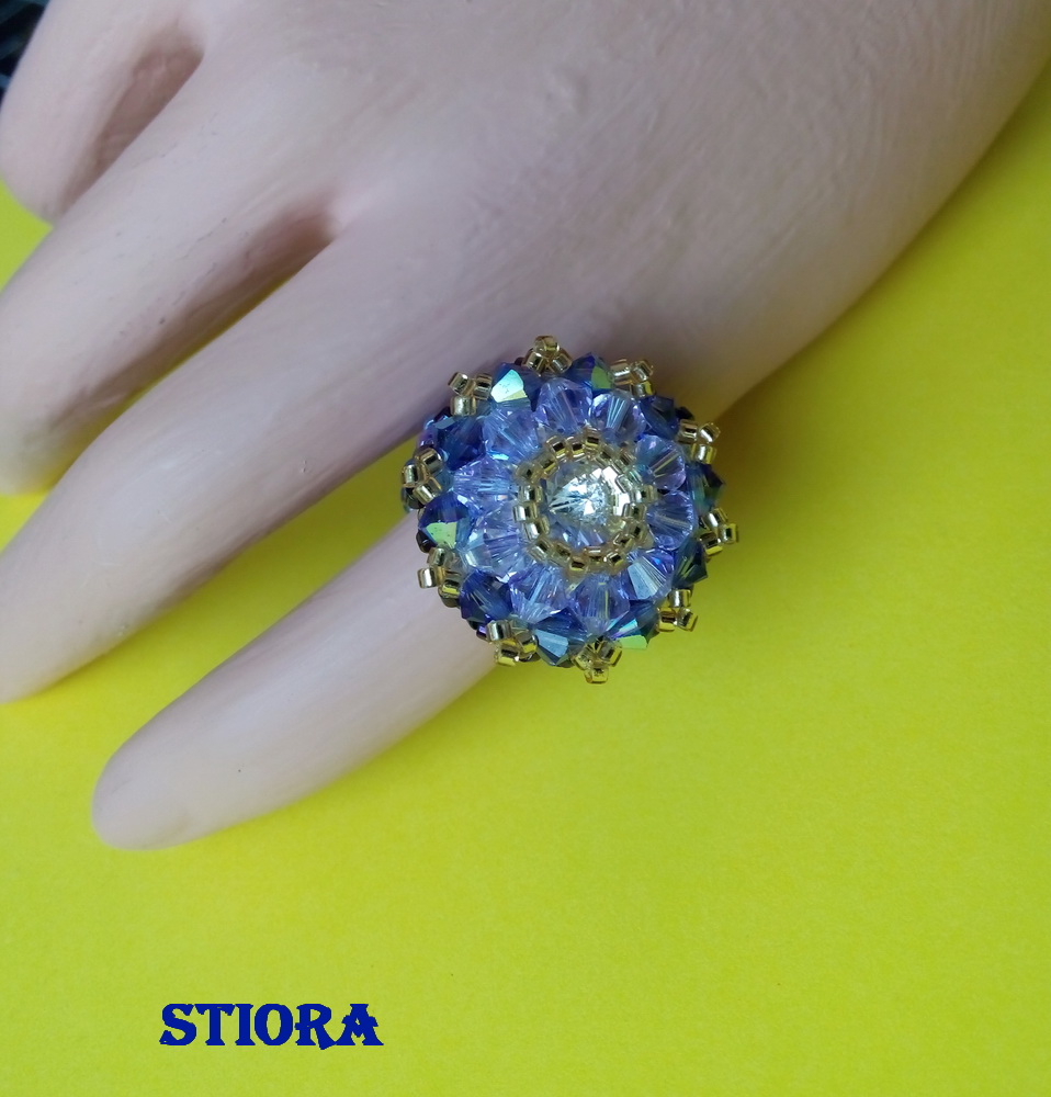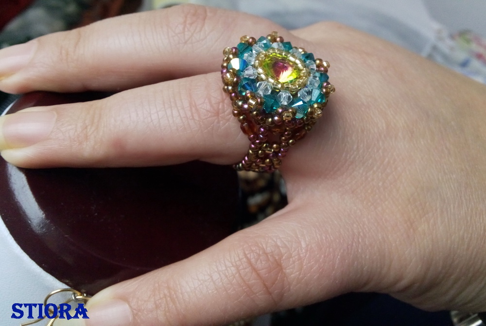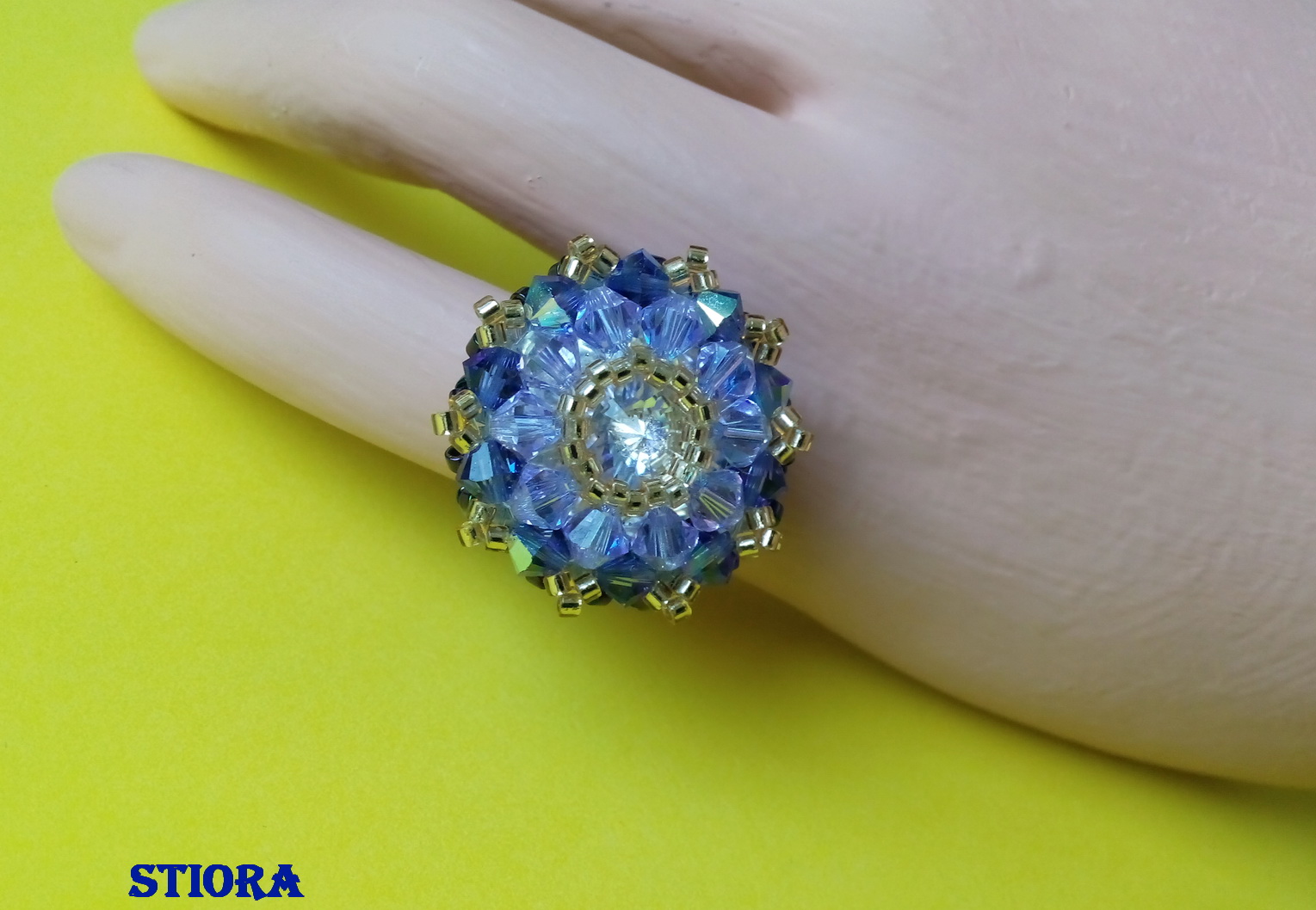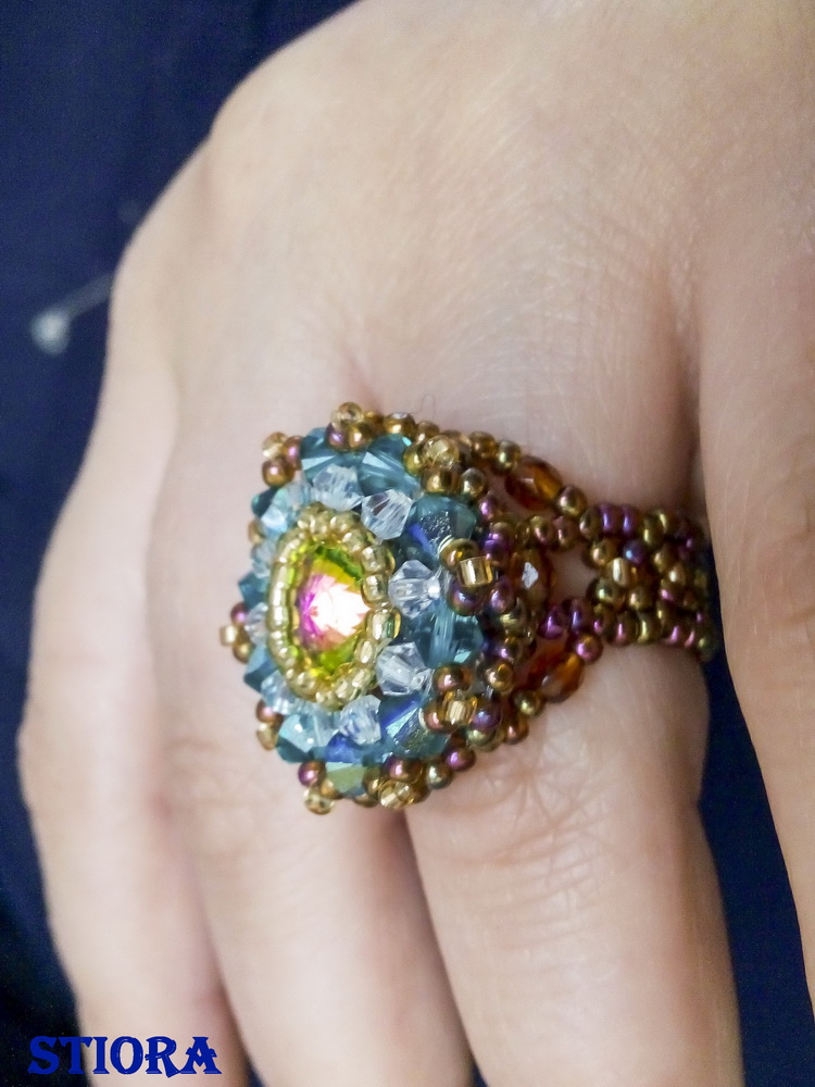 Inel lucrat manual din cristale swarovski – rivoli, fire polished beads si margele toho.