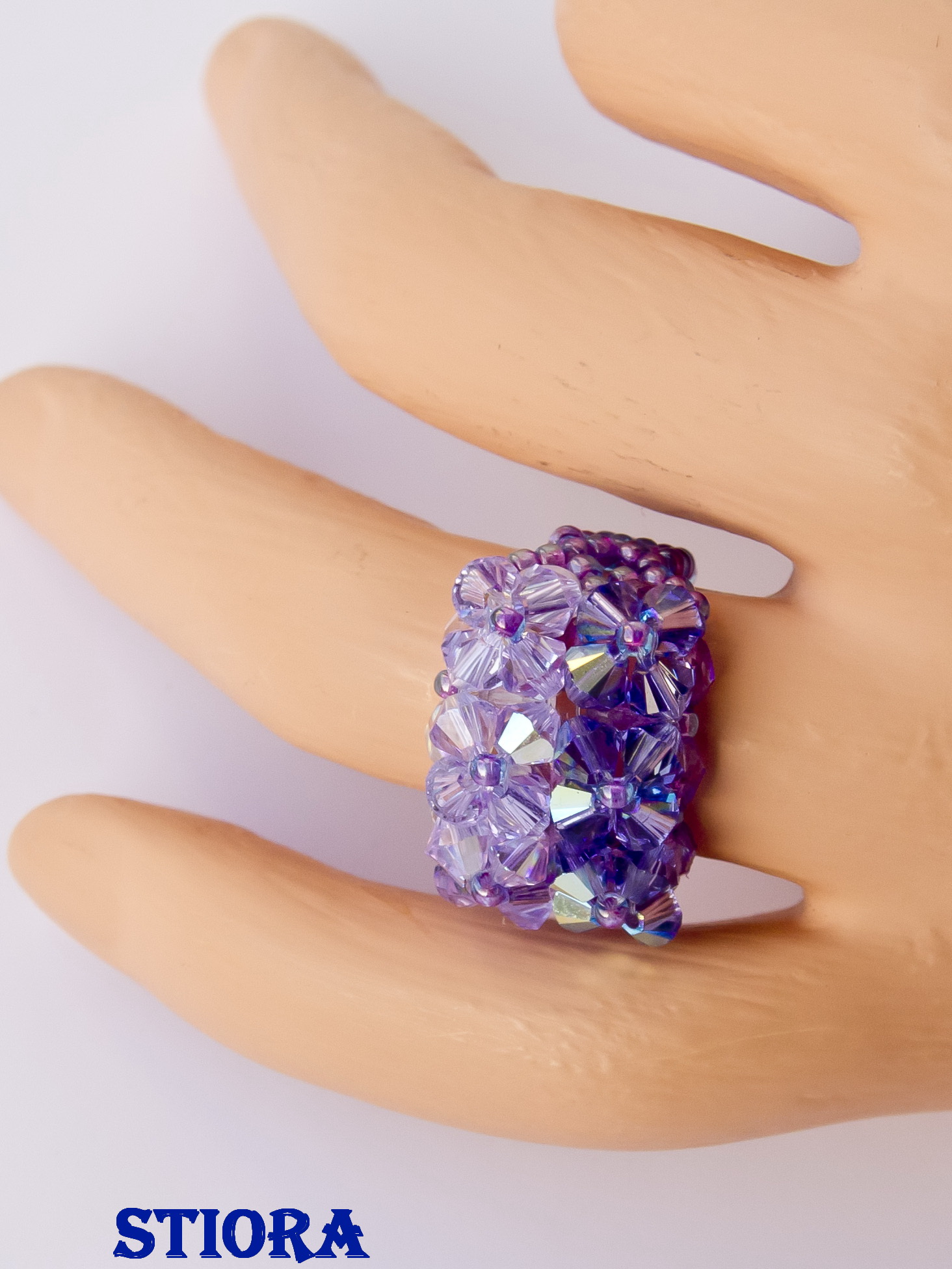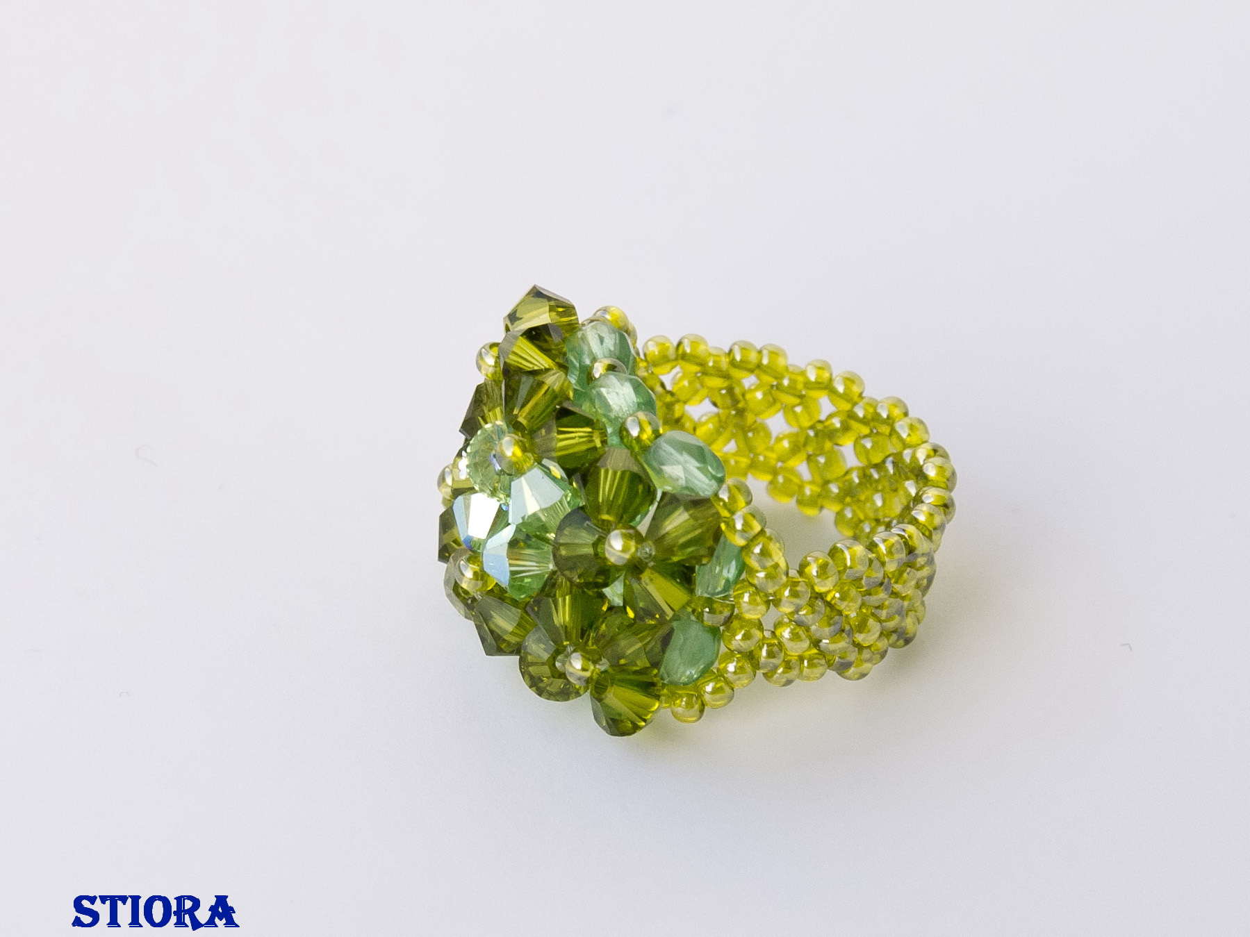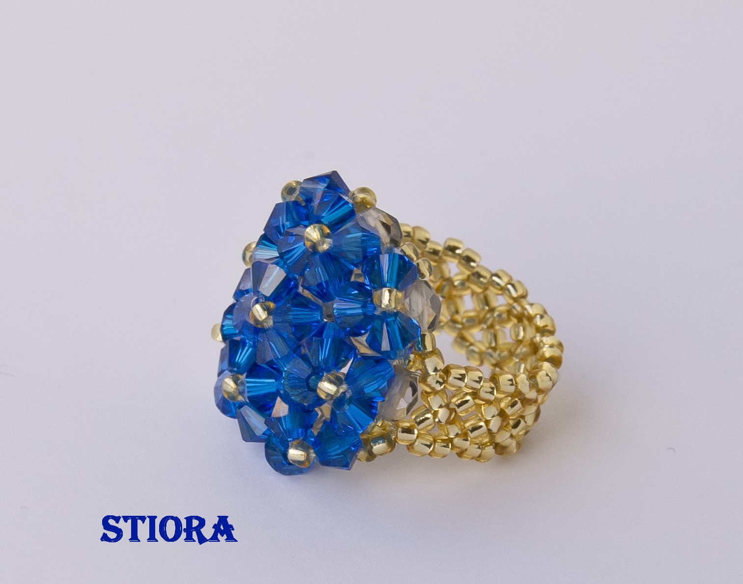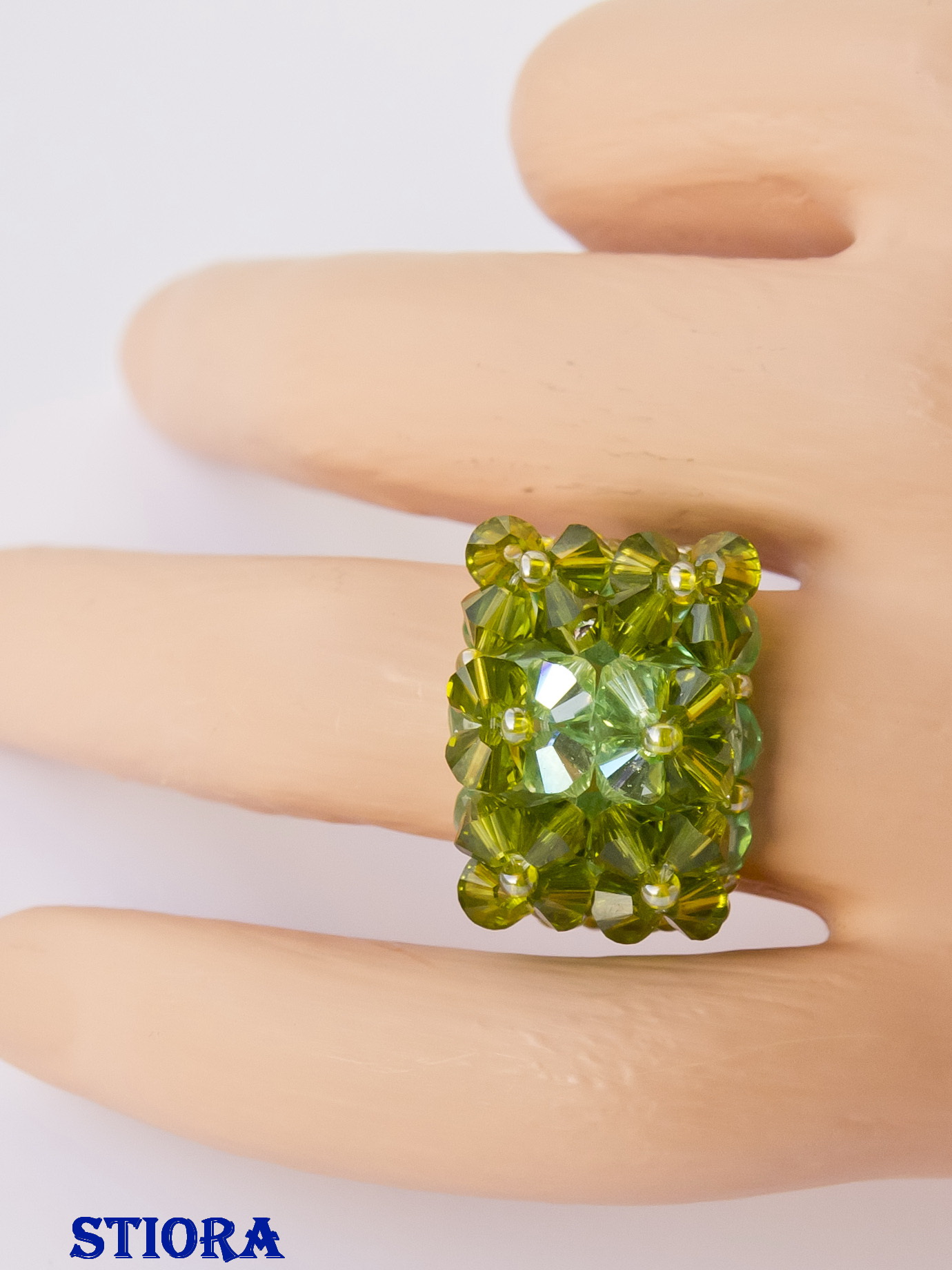 Inel lucrat manual din cristale swarovski – rivoli, fire polished beads si margele toho.