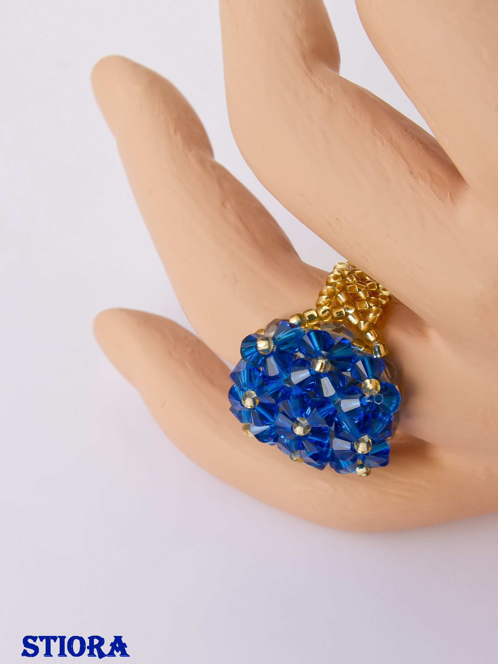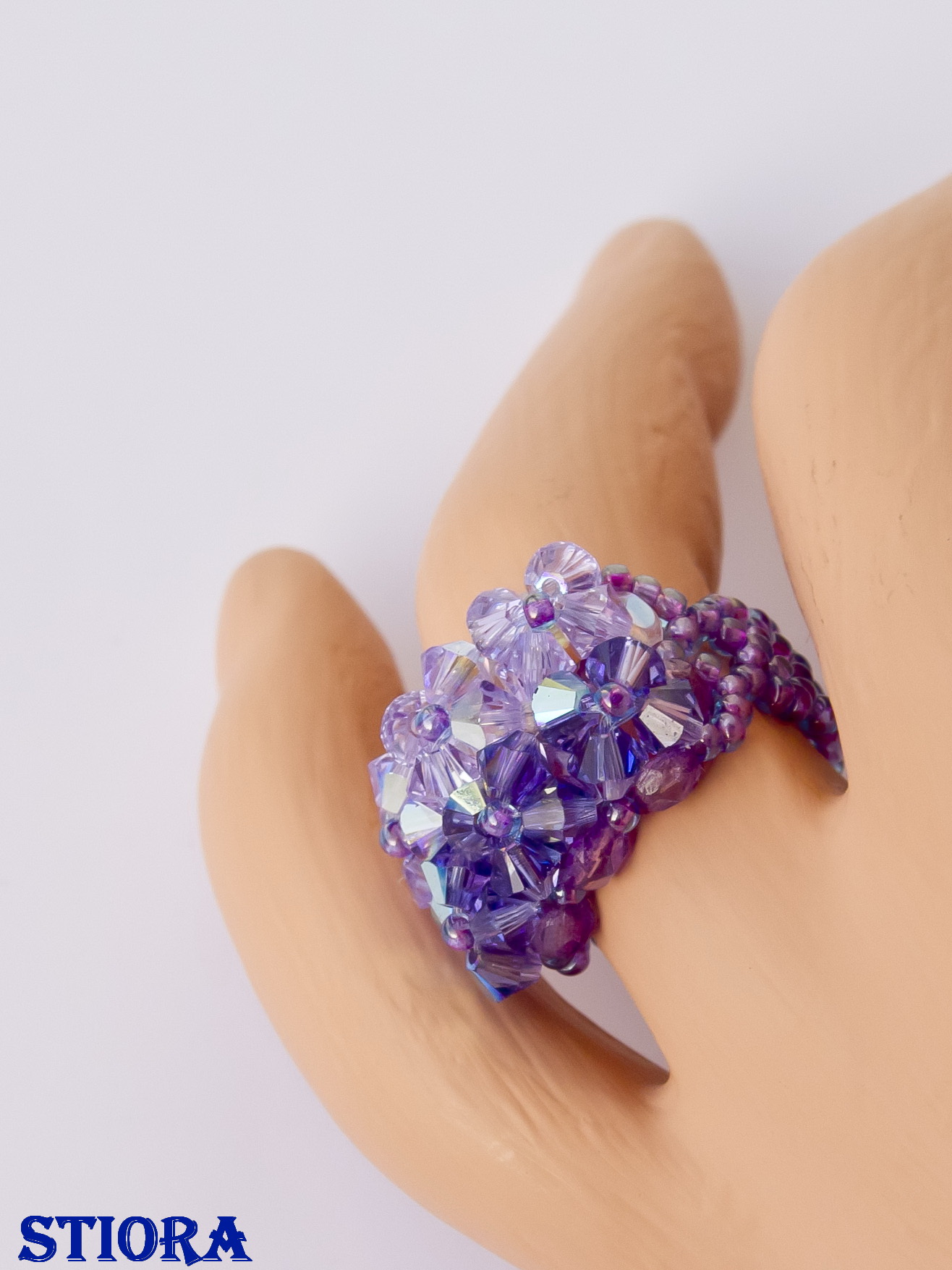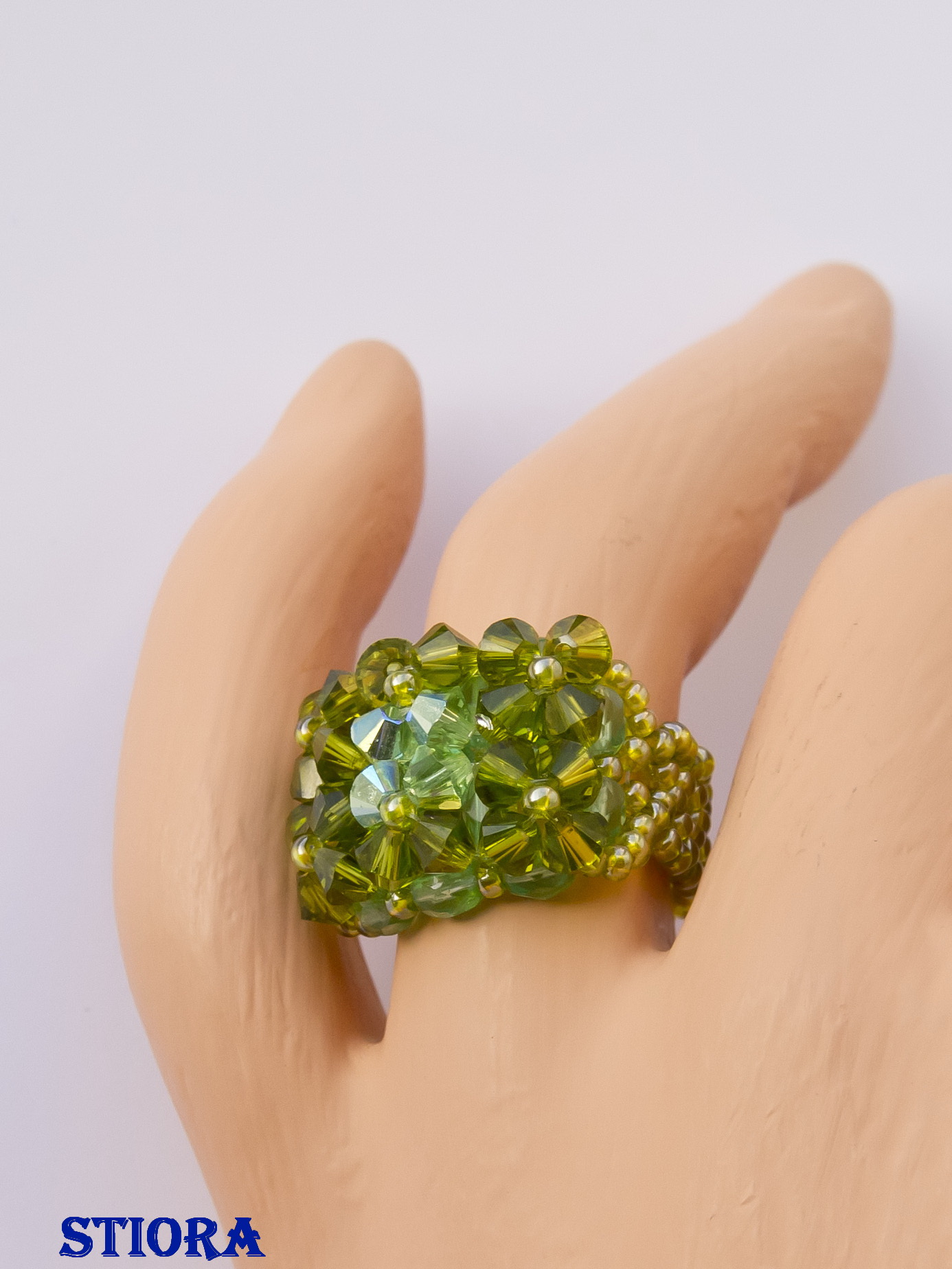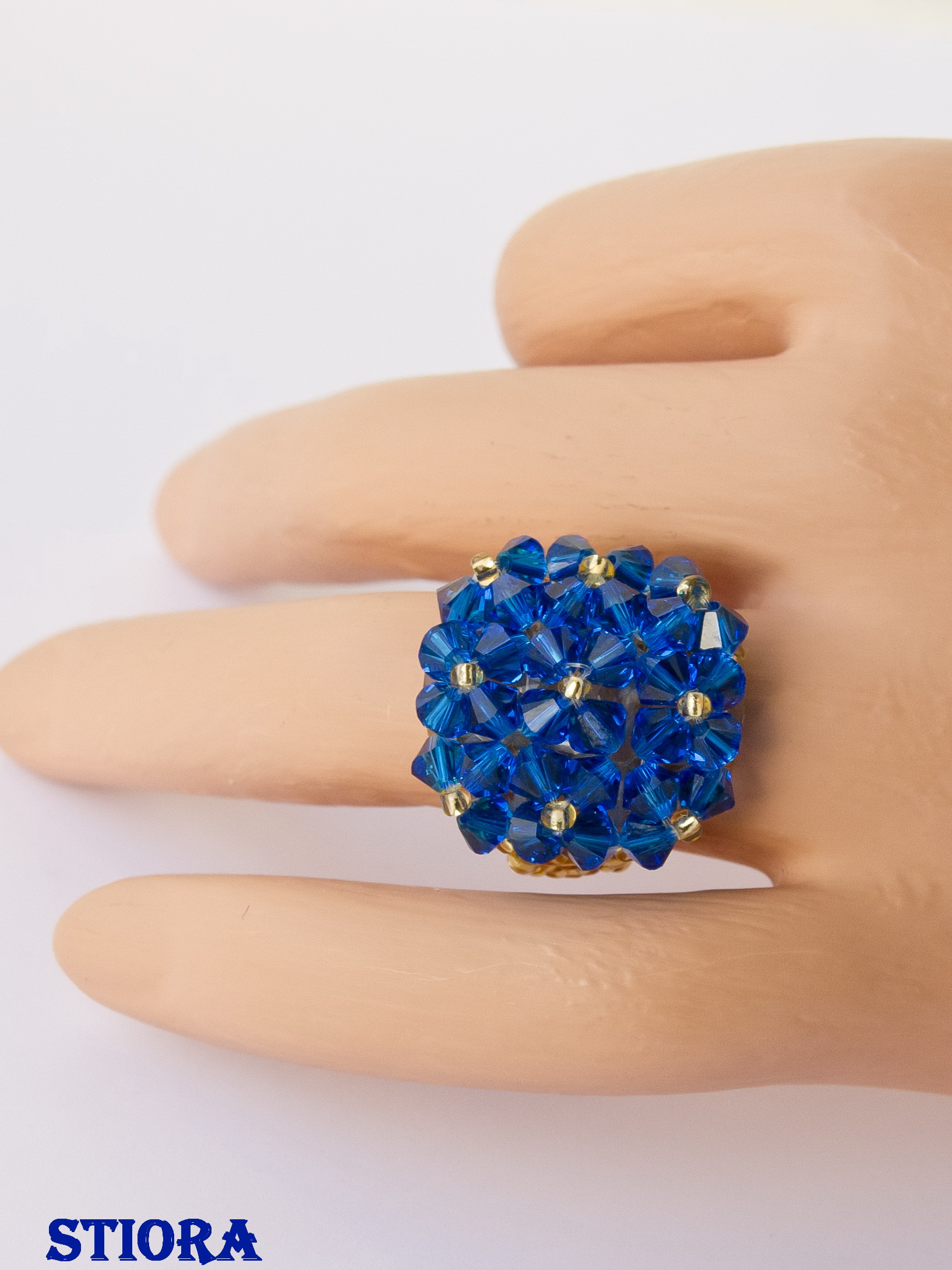 Inel lucrat manual din cristale swarovski – rivoli, fire polished beads si margele toho.